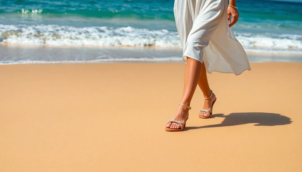 Si buscas algo más casual, las sandalias de tiras planas son ideales. Son cómodas y se adaptan bien a un atuendo diario, permitiendo que tus pies respiren. Combínalas con vestidos ligeros o jeans para un look relajado y chic.