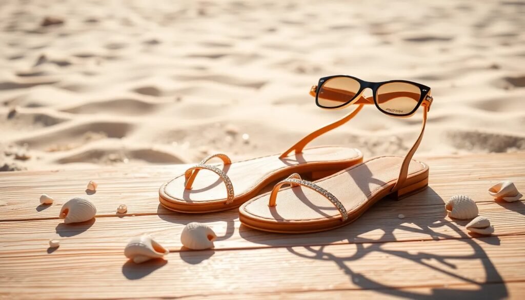 • Sandalias de tiras planas: Combinan bien con vestidos de verano.